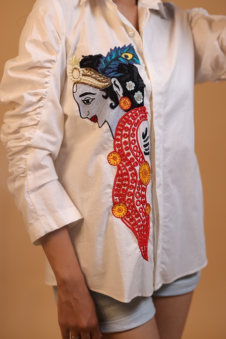 Details.. hand-embroidered motif with gather detailed sleeves, button down shirt